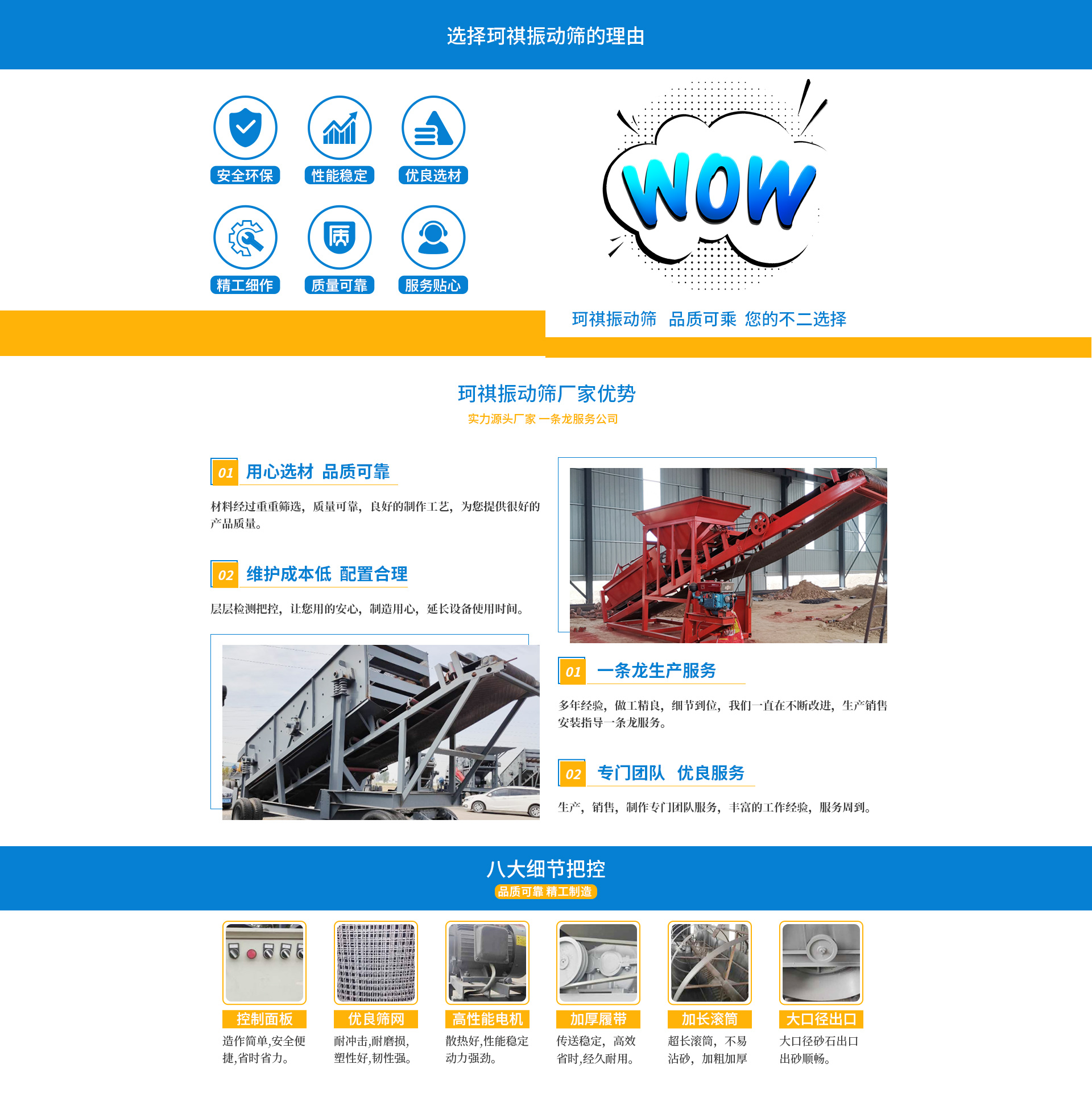 篩砂機的主要特點編輯1、 高度整體性:除成品料堆料皮帶機外,所有系統都集成于一個整體框架內,既保證了
